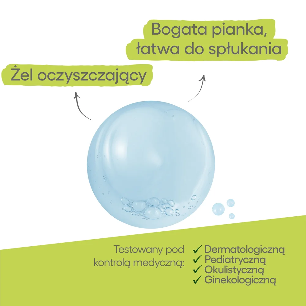 Nakładać 1 lub 2 razy dziennie na mokrą skórę. Obficie spłukać. Butelka z wygodną pompką.Informacje o bezpieczeństwie