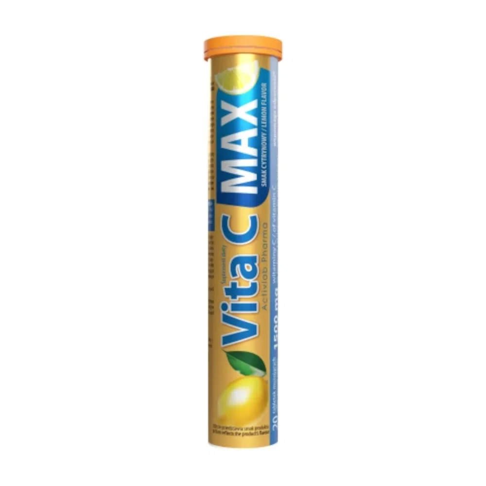 ActivLab Pharma, Vita C Max to suplement diety w formie musujących tabletek o smaku cytrynowym. Składniki produktu wspierają prawidłowe funkcjonowanie układu odpornościowego, a także pomagają redukować uczucie zmęczenia i znużenia. Preparat przeznaczony dla osób dorosłych.