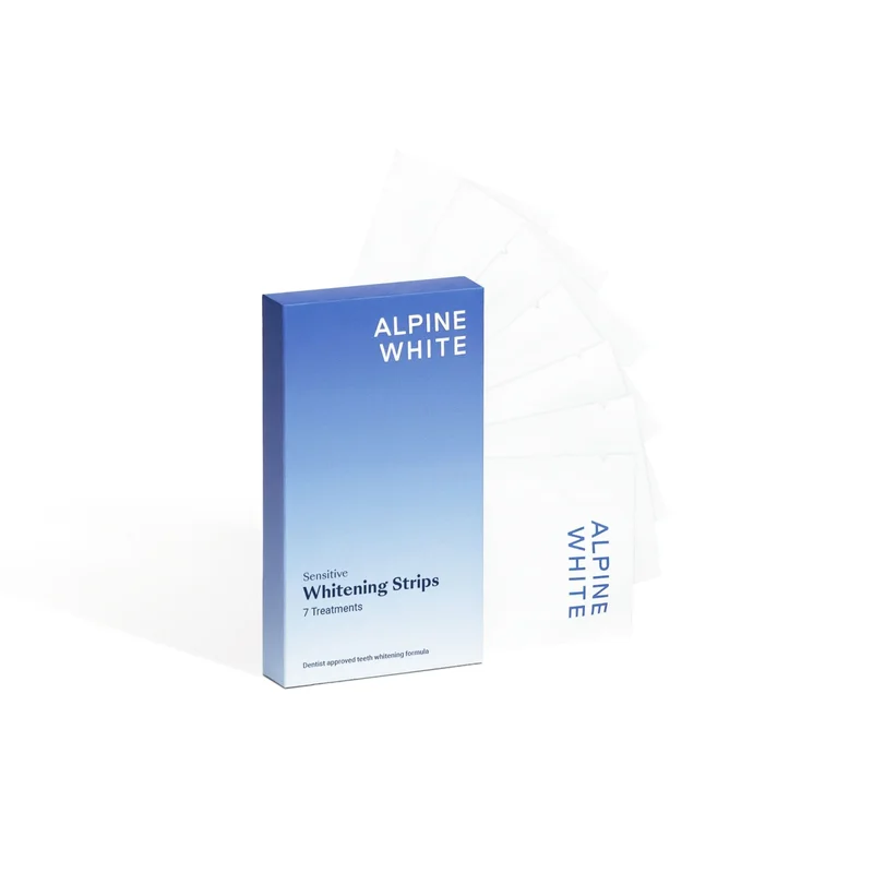 Alpine White, paski wybielające, Sensitive Whitening Strips to produkt kosmetyczny opracowany z myślą o zębach wrażliwych. Formuła z PAP została zaprojektowana tak, aby rozjaśniać uśmiech w sposób łagodny dla szkliwa, a pierwsze zauważalne rezultaty mogą pojawić się już po 3 dniach regularnego stosowania.
