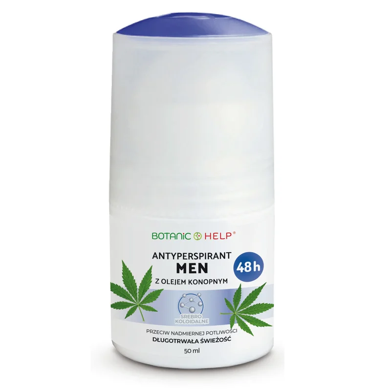 Botanic Help Antyperspirant Men 48h z olejem konopnym roll-on to produkt kosmetyczny opracowany dla mężczyzn z myślą o skutecznej ochronie przed potem i nieprzyjemnym zapachem.