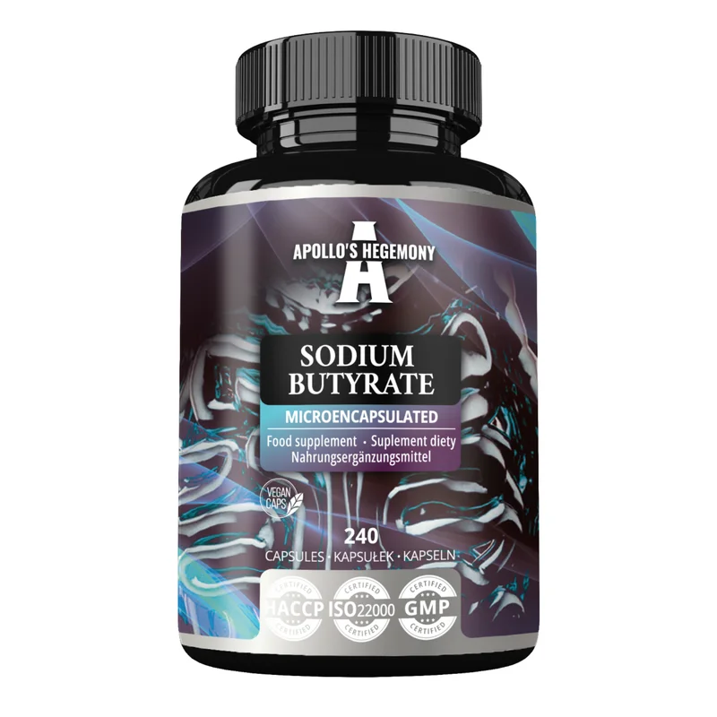 Apollo's Hegemony, Sodium Butyrate to suplement diety, którego składniki wspierają równowagę mikroflory jelitowej oraz procesy metaboliczne. Zawarta w nim maślan sodu może wspomagać funkcjonowanie układu pokarmowego oraz odgrywać rolę w regulacji stanów zapalnych. Produkt ten jest dedykowany dla osób dorosłych dbających o właściwe wsparcie organizmu w codziennej diecie.