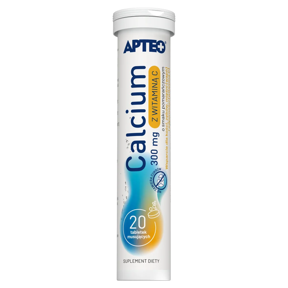 APTEO CALCIUM Z witaminą C 300 mg to suplement diety, zawierający składniki wspierające utrzymanie prawidłowego funkcjonowania układu kostnego oraz wspomagające prawidłowe funkcjonowanie układu odpornościowego. Calcium jest istotnym minerałem w organizmie, a witamina C jest antyoksydantem, który przyczynia się do ochrony komórek przed stresem oksydacyjnym. Suplement jest przeznaczony dla osób, które chcą wzbogacić swoją codzienną dietę w te składniki.Składniki