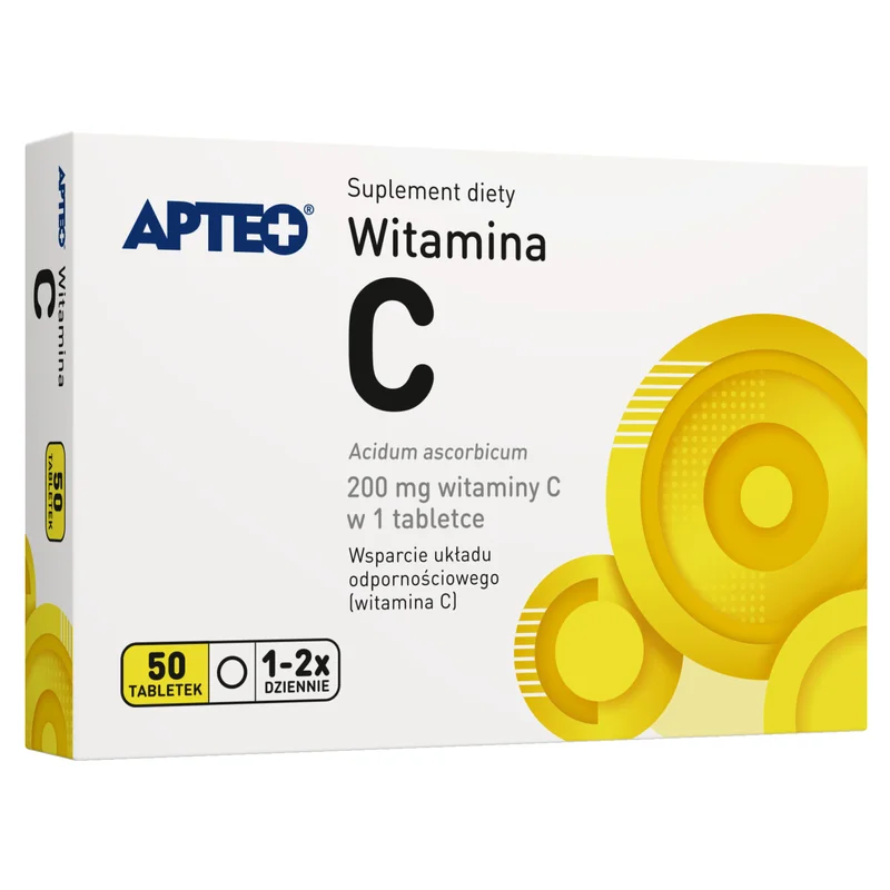 Apteo Witamina C 200 mg to suplement diety, który zawiera składniki wspierające naturalne funkcje organizmu oraz wspomagające ochronę komórek przed stresem oksydacyjnym. Witamina C jest istotna dla prawidłowego funkcjonowania układu immunologicznego. Suplement ten może być stosowany w celu uzupełnienia codziennej diety w witaminę C.Składniki