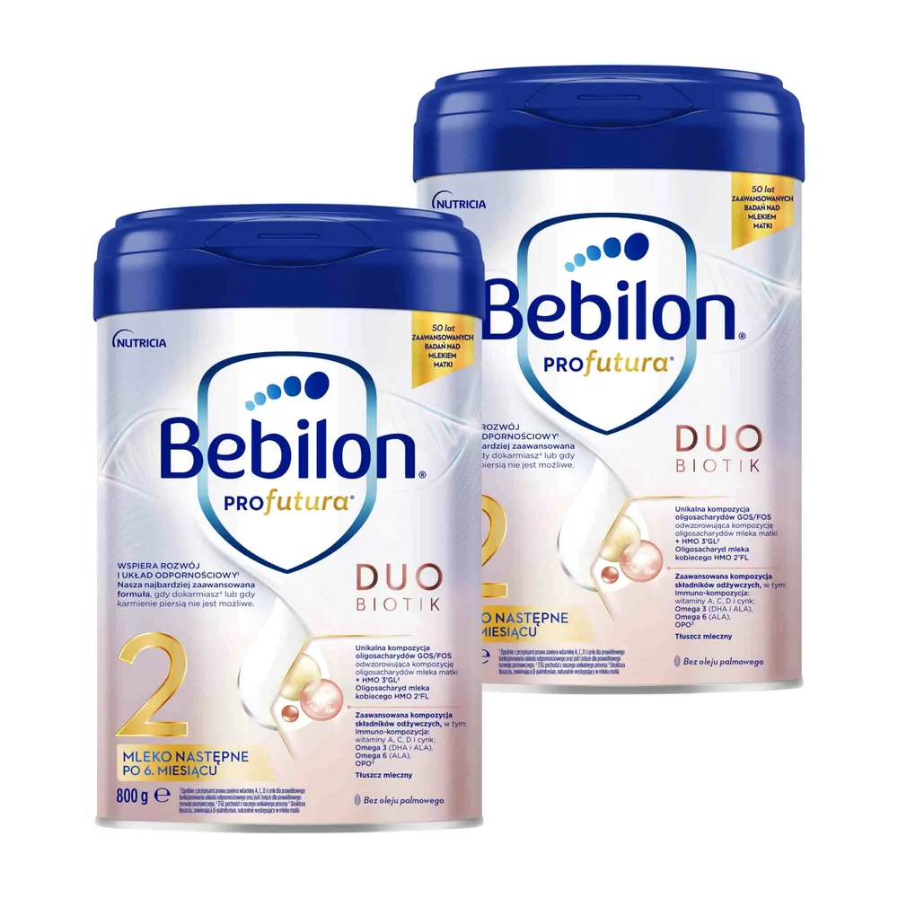 Bebilon PROfutura DUOBIOTIK 2, mleko następne po 6. miesiącu to środek spożywczy specjalnego przeznaczenia żywieniowego w formie proszku, przeznaczony dla niemowląt, które ukończyły 6 miesiąc życia, i które nie są karmione piersią. Może być również wykorzystywany do dokarmiania niemowląt karmionych mlekiem matki, jeśli zaistnieje taka potrzeba.