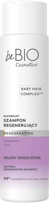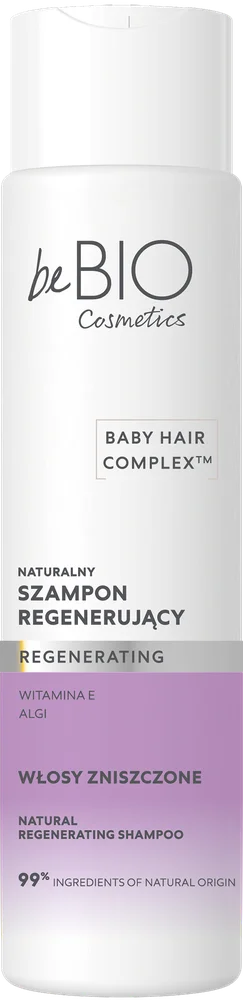 BeBIO, szampon regenerujący to produkt kosmetyczny, który przeznaczony jest do pielęgnacji włosów zniszczonych i osłabionych. Formuła szamponu zawiera składniki aktywne mające na celu regenerację struktury włosów, przywracając im zdrowy wygląd. Produkt delikatnie oczyszcza i nawilża, wspierając ich odbudowę oraz nadając miękkość i gładkość. Szampon jest odpowiedni do stosowania na co dzień. Produkt wegański. Testowany dermatologicznie.