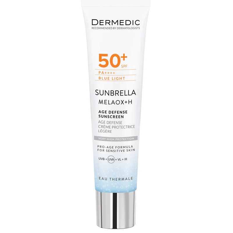 Dermedic Sunbrella Lekki krem ochronny Age Defense SPF 50+ to produkt kosmetyczny, który zapewnia wysoką ochronę przeciwsłoneczną. Formuła kremu działa na oznaki starzenia się skóry, chroniąc ją przed szkodliwym działaniem promieni UV. Produkt jest przeznaczony do pielęgnacji skóry, zapewniając odpowiednie nawilżenie oraz pomoc w utrzymaniu jej młodzieńczego wyglądu.