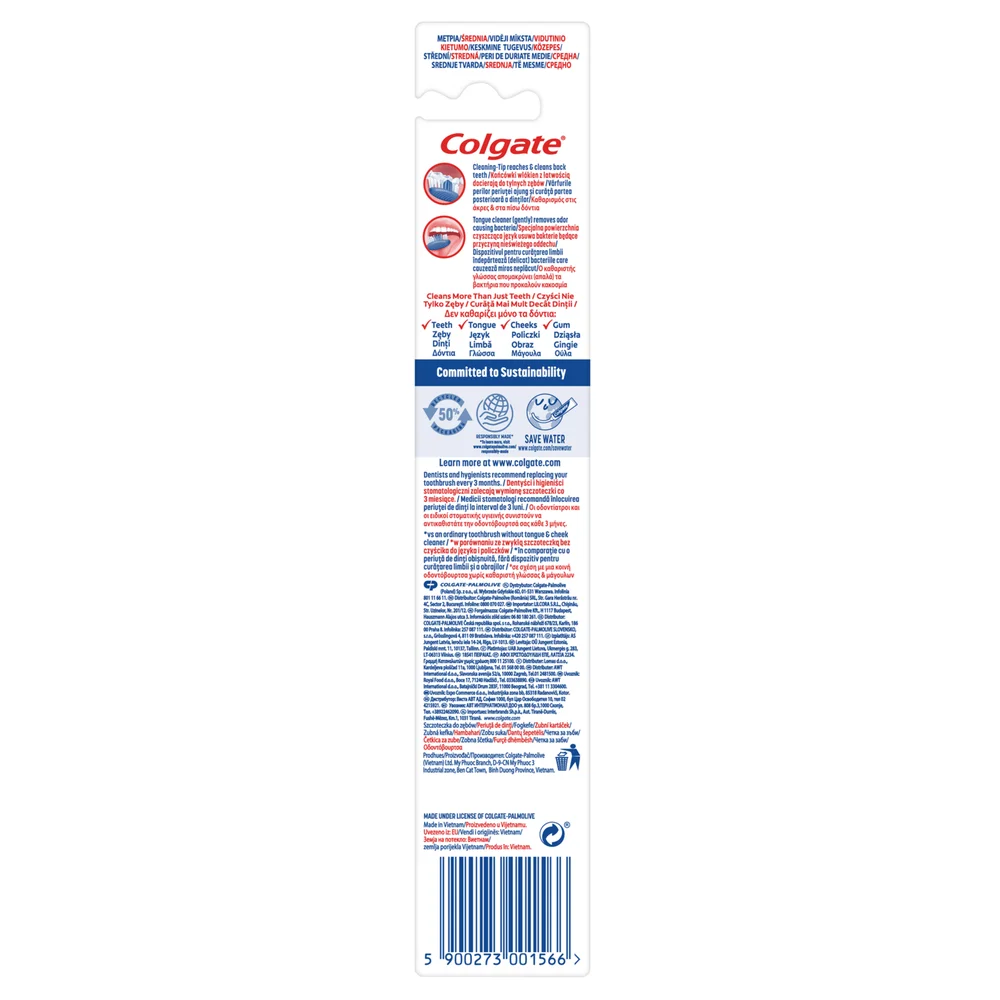 Dentyści i higieniści dentystyczni zalecają wymianę szczoteczki co 3 miesiące. Po użyciu dokładnie wypłucz główkę szczoteczki do zębów, strząśnij nadmiar wody i przechowuj w pozycji pionowej.Producent: COLGATE-PALMOLIVE (POLAND) Sp. z o.o. , ul. Wybrzeże Gdyńskie 6D, 01-531 Warszawa