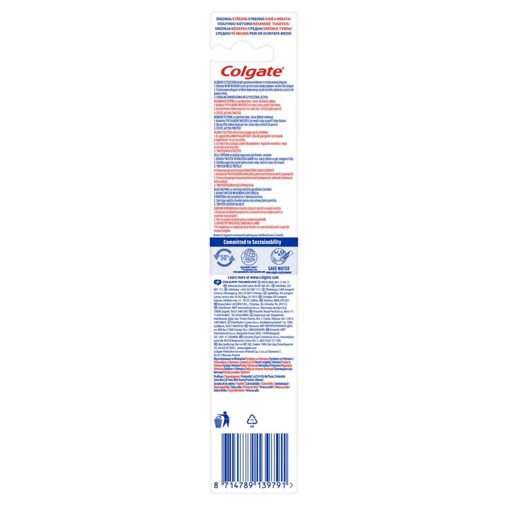 Colgate Twister Deep Cleaning Medium Szczoteczka do zębów, 2 sztuki