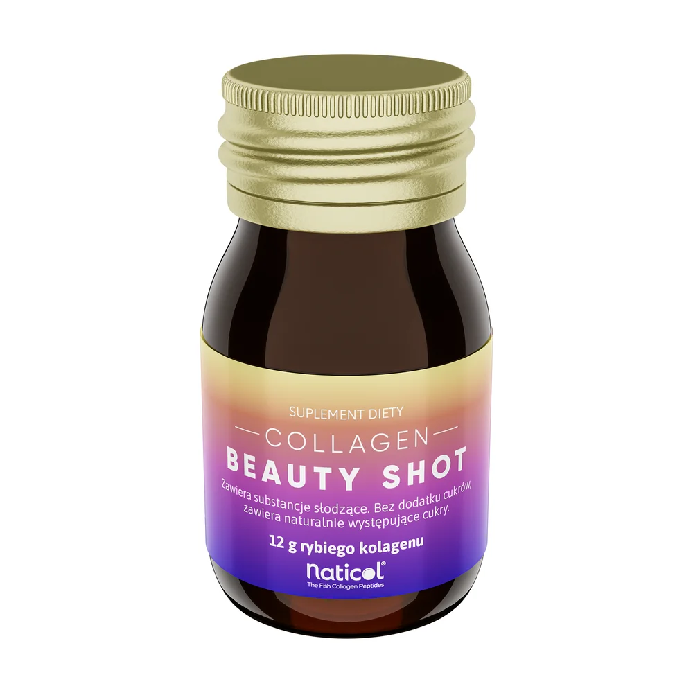 Collagen Beauty Shot to suplement diety dostarczający kolagen oraz starannie dobrane składniki wspierające nawilżenie i elastyczność skóry, przyczyniające się do zachowania jej prawidłowej kondycji. Kolagen stanowi istotny element strukturalny skóry oraz innych tkanek, natomiast obecne w składzie antyoksydanty mogą wspomagać ochronę komórek przed działaniem wolnych rodników. Produkt przeznaczony jest dla osób dorosłych.