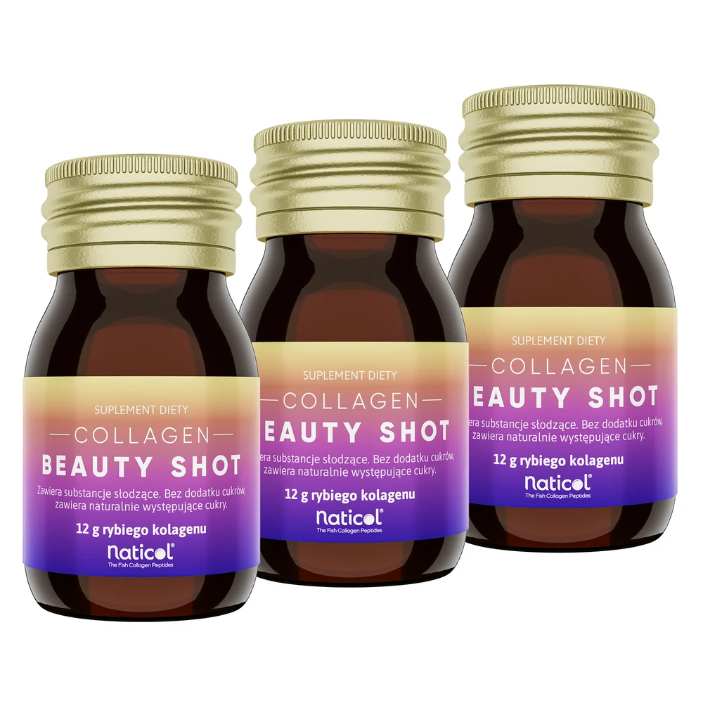 Collagen Beauty Shot to suplement diety zawierający hydrolizowany kolagen rybi i inne składniki wspierające codzienną pielęgnację skóry, włosów i paznokci. Ma wygodną formę gotowego do spożycia napoju o odmierzonej dziennej dawce. Produkt przeznaczony dla osób dorosłych.