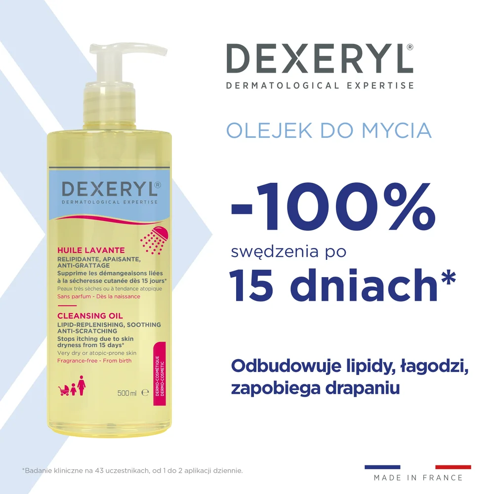 Dexeryl Dermokosmetyczny olejek do mycia, uzupełniający lipidy, łagodzący, przeciw drapaniu, 500 ml