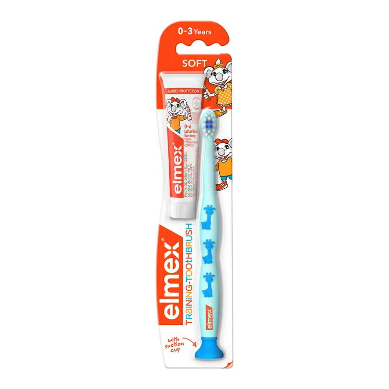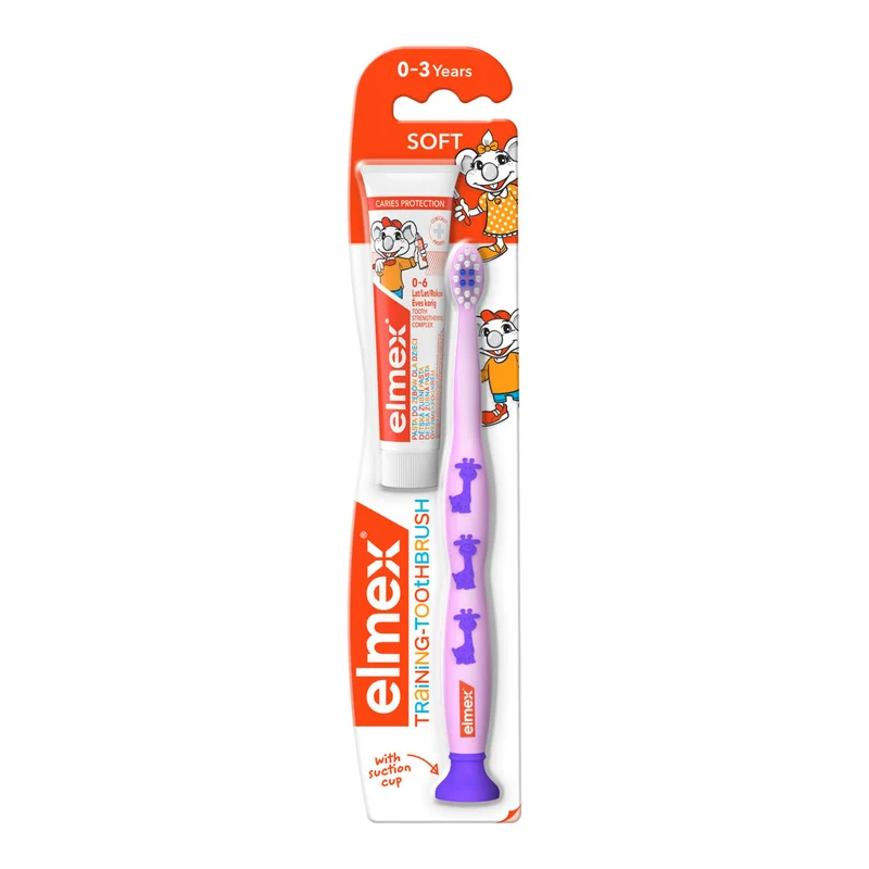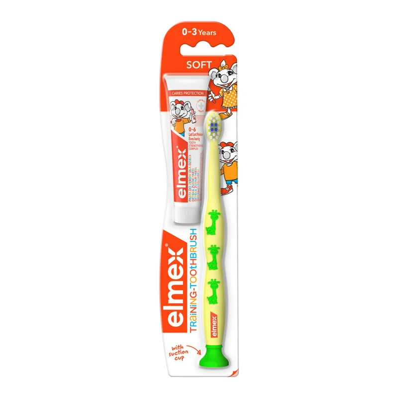 Elmex szczoteczka miękka do zębów dla dzieci 0-3 lat 1 sztuka + pasta do zębów 12 ml [ZESTAW]