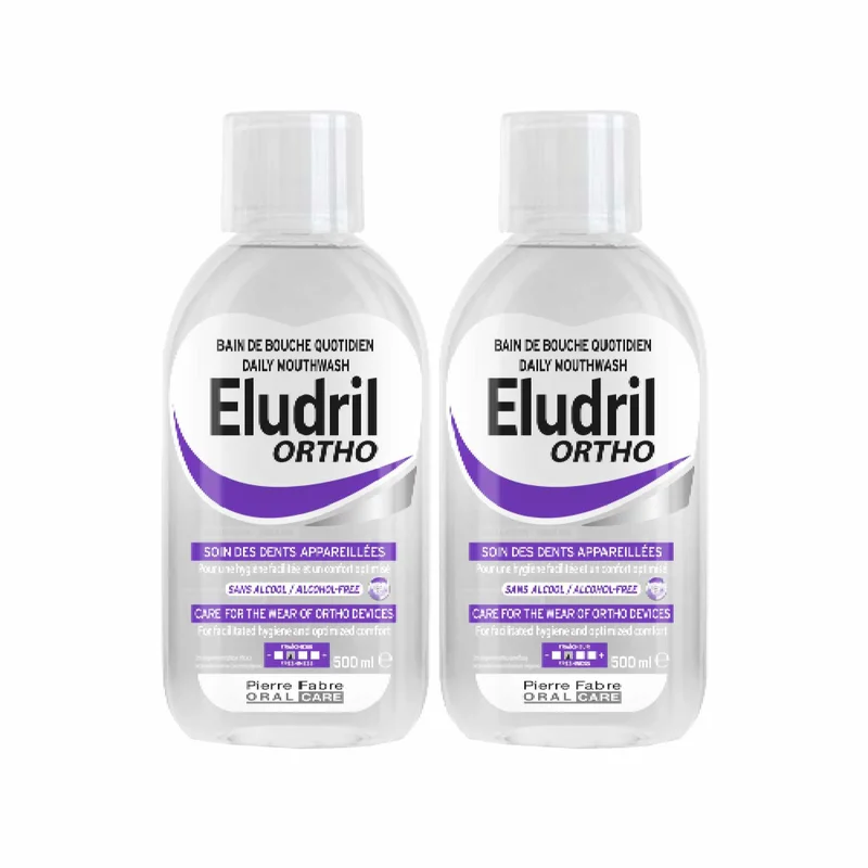 Eludril Ortho Płyn do płukania jamy ustnej ułatwia higienę jamy ustnej osobom użytkującym aparaty ortodontyczne: Utrzymuje zdrowe zęby i dziąsła dzięki działaniu przeciwpłytkowemu i remineralizującemu. Chroni przed dyskomfortem spowodowanym odkładaniem się płytki nazębnej. Zawiera Fluorinol, który wzmacnia szkliwo, zapobiega próchnicy oraz powstawaniu odwapnień szkliwa wokół zamków aparatu. Półprzezroczysta formuła nie zabarwia elementów aparatu ortodontycznego. Miętowy aromat zapewnia uczucie świeżości. Zwiększa skuteczność szczotkowania. Butelka PET wykonana w 100% z recyklingowanego plastiku. Bez alkoholu. Gotowy do użycia.Stosowanie produktu