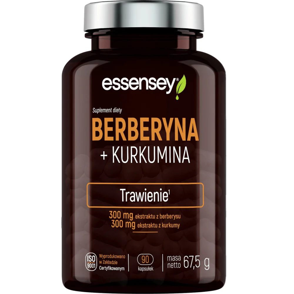 Essensey Berberyna + Kurkumina to suplement diety w formie kapsułek, zawierający ekstrakty: z berberysu i kurkumy. Produkt przeznaczony dla osób dorosłych.