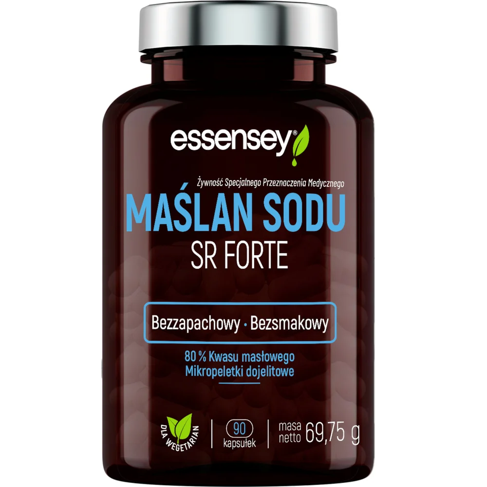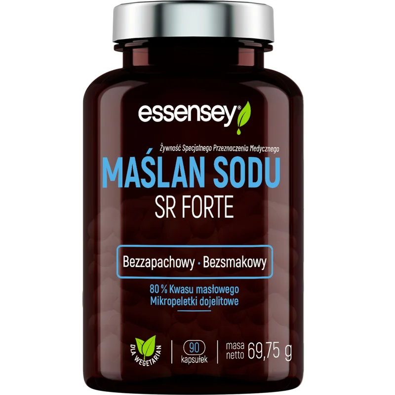 Essensey Maślan Sodu Sr Forte to żywność specjalnego przeznaczenia medycznego zawierająca maślan sodu. Produkt przeznaczony dla dorosłych i dzieci powyżej 7. roku życia.
