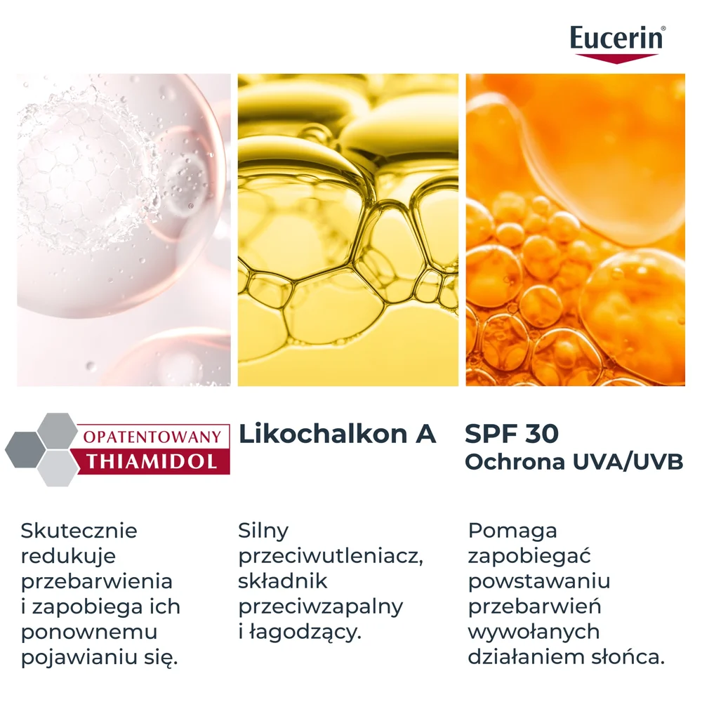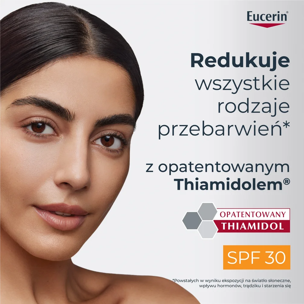 Eucerin krem sprawdzi się w codziennej pielęgnacji skóry z przebarwieniami i nierównym kolorytem. Dzięki zawartości SPF 30 produkt zapewnia również skuteczną ochronę przed niekorzystnym wpływem promieniowania słonecznego.