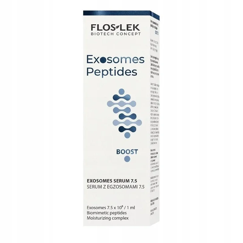 Exosomes Peptides, Serum z egzosomami do twarzy ujędrniające i rewitalizujące boost 7.5, 30 ml to produkt kosmetyczny. Serum zawiera egzosomy i peptydy, które wspierają ujędrnienie i rewitalizację skóry. Preparat ma na celu poprawę struktury skóry oraz przywrócenie jej blasku. Regularne stosowanie serum może przyczynić się do poprawy elastyczności i ogólnej kondycji skóry twarzy.Składniki/Ingredients