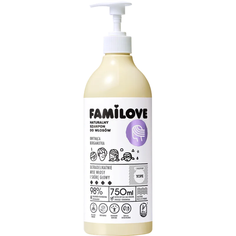 Familove Szampon do włosów to produkt kosmetyczny przeznaczony do pielęgnacji każdego rodzaju włosów, który odżywia i wzmacnia pasma, przywracając im zdrowy wygląd, sprężystość i naturalny połysk.