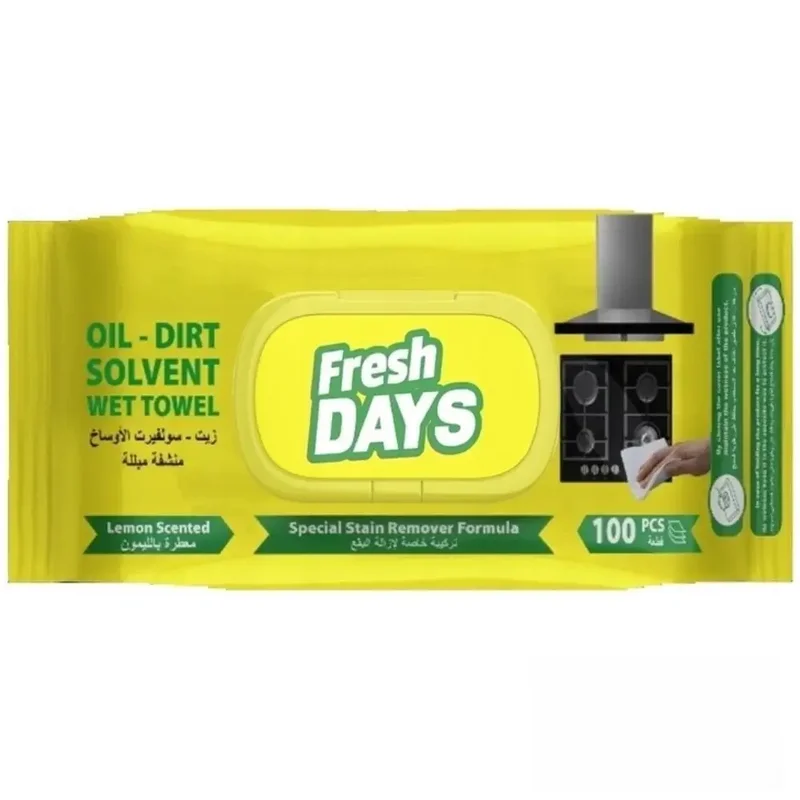Fresh Days Mokre ręczniki usuwające tłuszcz XXL, 100 sztuk, przeznaczone są do skutecznego czyszczenia rąk i powierzchni z tłustych zabrudzeń.