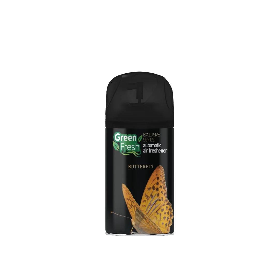 Odświeżacz powietrza Green Fresh Butterfly 250 ml przeznaczony jest do neutralizowania nieprzyjemnych zapachów i nadawania pomieszczeniom lekkiego, kwiatowo-owocowego aromatu.