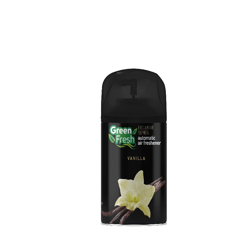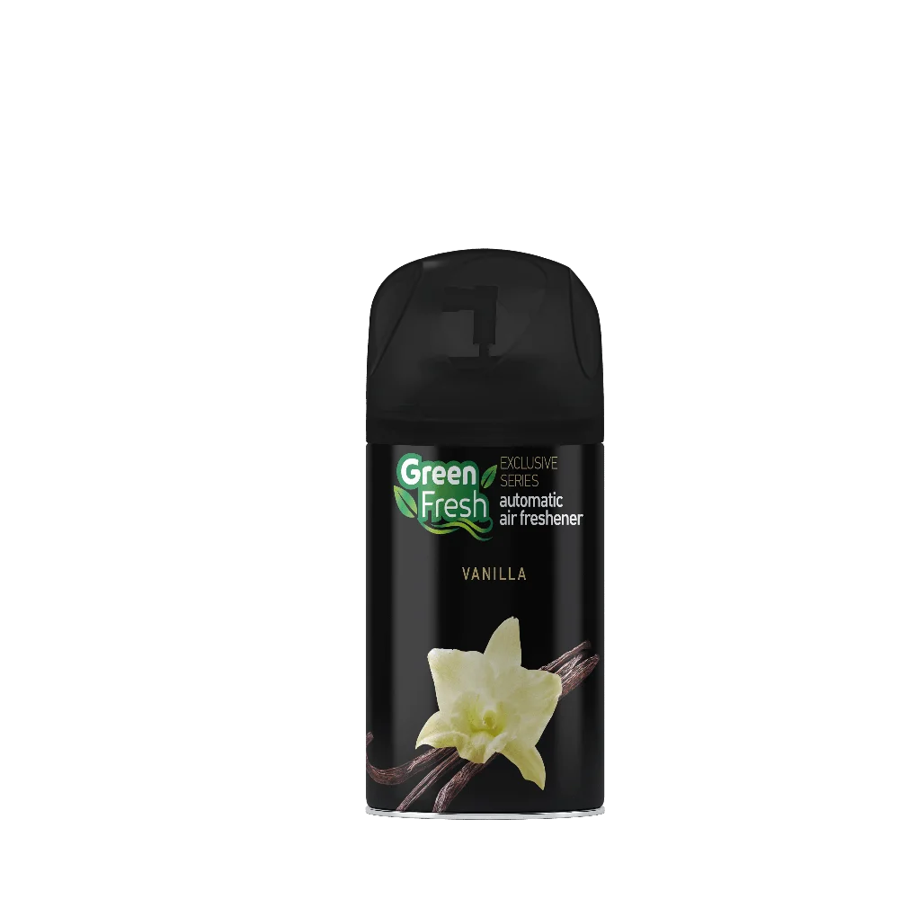 Produkt Green Fresh Odświeżacz powietrza Wanilia, 250 ml jest przeznaczony do odświeżania powietrza w pomieszczeniach, nadając im przyjemny, waniliowy zapach.
