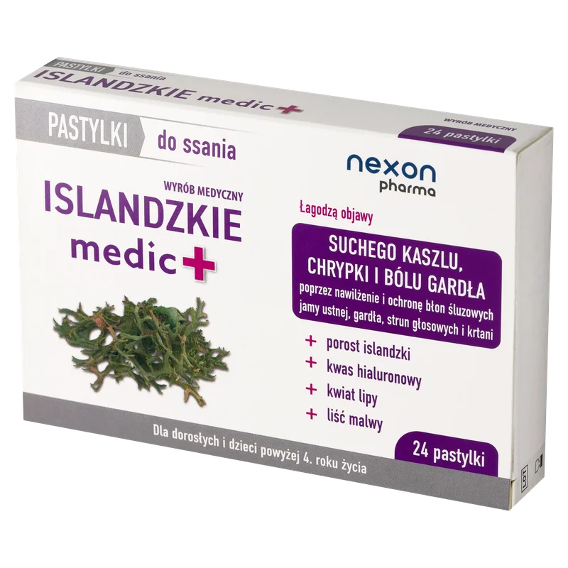 Islandzkie medic + dla dorosłych i dzieci powyżej 4. roku życia wskazane do stosowania osobom, które zmagają się z kaszlem, chrypką czy bólem gardła.