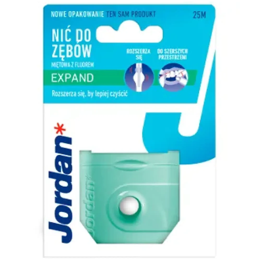 JORDAN EXPANDING FRESH Nić dentystyczna rozprężająca się, miętowa, fluor, z pastą, 25 m