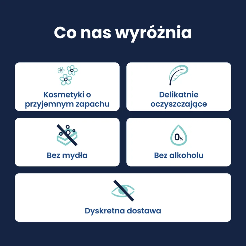 - Pomaga przywrócić naturalną równowagę pH okolic intymnych dzięki łagodnie zasadowemu pH 8.