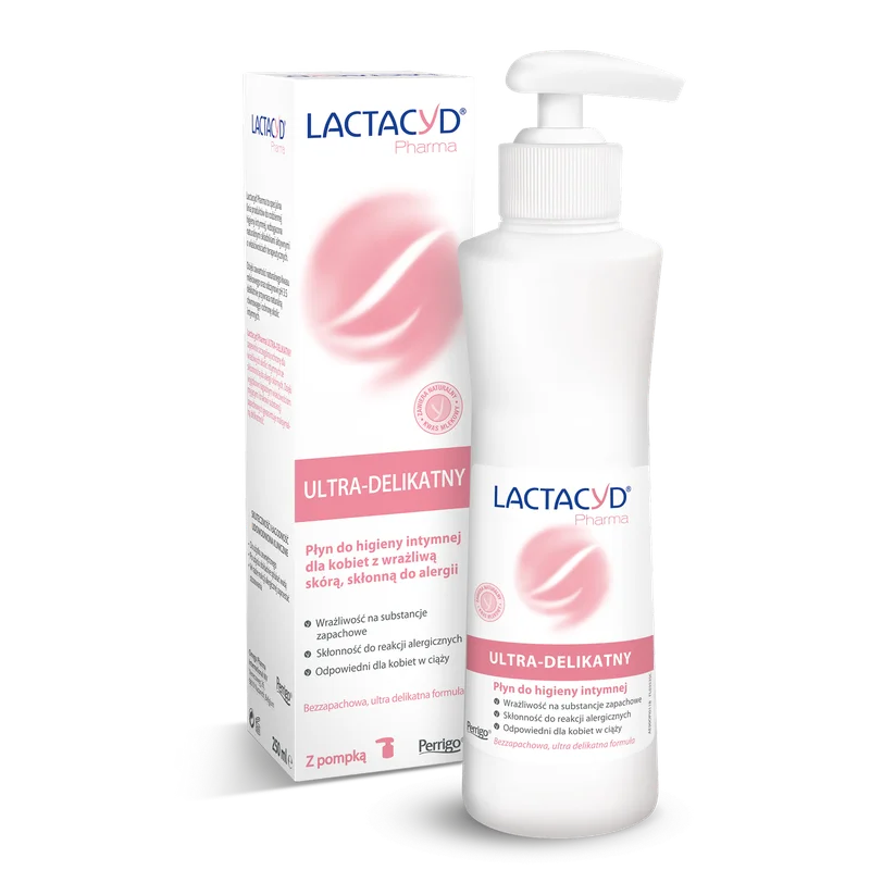 Lactacyd Pharma ULTRA-DELIKATNY myje, pielęgnuje i chroni miejsca intymne. Zawiera naturalny kwas L-mlekowy, wspomagający utrzymanie naturalnej równowagi pH. Ultra-delikatny płyn do higieny intymnej dla kobiet Lactacyd ułatwia kompleksową ochronę oraz pielęgnację, jednocześnie wzmacniając naturalną barierę ochronną okolic intymnych. Lactacyd Ultra-delikatny nie zaburza pH miejsc intymnych – kosmetyk został wzbogacony o naturalny kwas L-mlekowy i delikatne substancje myjące. Formuła pozbawiona jest składników zapachowych, które mogłyby wywoływać podrażnienie bardzo wrażliwej skóry.Stosowanie produktu