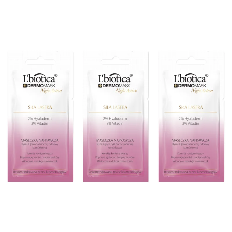 Lbiotica DermoMask Night Active Siła lasera maseczka naprawcza stymulująca cykl nocnej odnowy komórkowej to produkt kosmetyczny. Maseczka wspiera procesy naprawcze skóry podczas snu, stymulując cykl nocnej odnowy komórkowej. Dzięki zastosowaniu składników aktywnych, produkt przyczynia się do regeneracji oraz odnowy komórek, co może wpływać na poprawę kondycji skóry. Użytkowanie maseczki zaleca się jako element codziennej pielęgnacji nocnej.Składniki/Ingredients