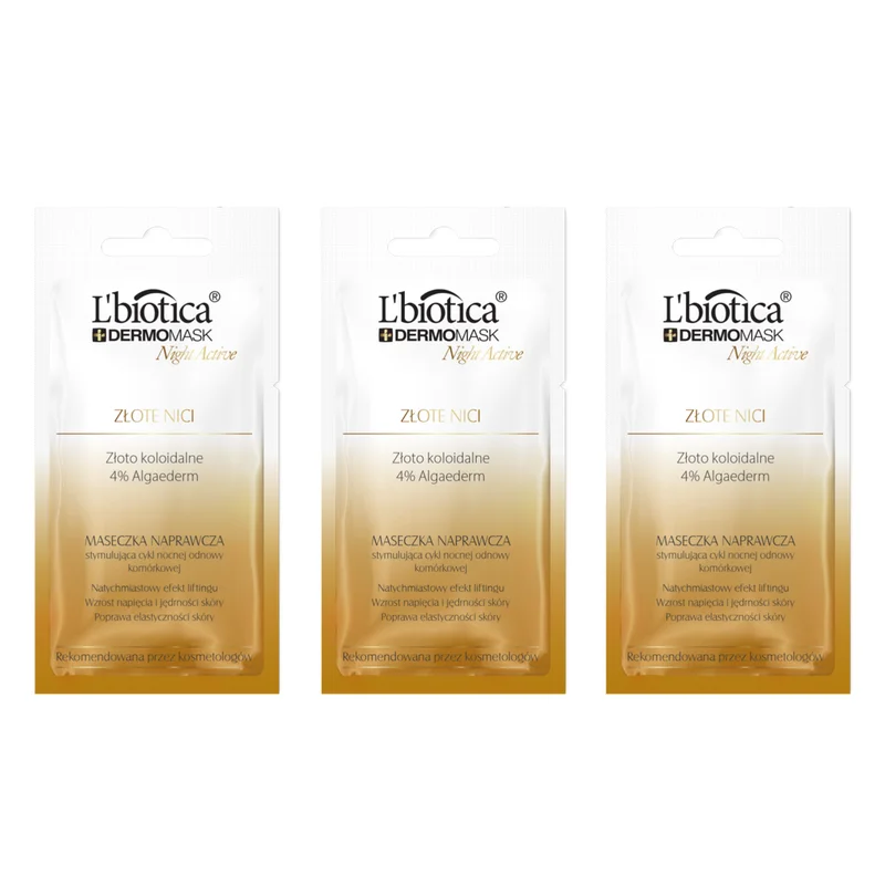 Lbiotica DermoMask Night Active Złote nici maseczka naprawcza stymulująca cykl nocnej odnowy komórkowej, 12 ml