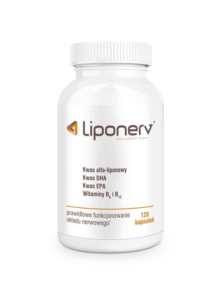 Liponerv to suplement diety zawierający połączenie kwasów tłuszczowych Omega-3 (DHA i EPA), kwasu alfa-liponowego oraz witamin z grupy B (B6 i B12). Składniki te wspierają prawidłowe funkcjonowanie układu nerwowego. Preparat jest polecany do stosowania u osób dorosłych. Produkt w formie kapsułek ułatwia codzienną suplementację.