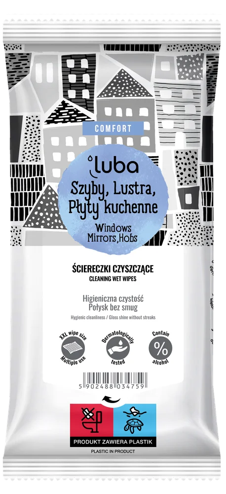 Luba Comfort, Czyszczące Ściereczki do szyb, luster i płyt kuchennych to produkt, który ułatwia szybkie i wygodne utrzymanie wszystkich szklanych i gładkich powierzchni w domu i samochodzie. Doskonale sprawdzają się na szybach samochodowych, oknach, lustrach, szybach w drzwiach i meblach, szklanych płytach i blatów kuchennych, szybach piekarnika oraz szklanym fartuchu kuchennym. Pozostawiają powierzchnie czyste, lśniące, przejrzyste i pachnące świeżością.