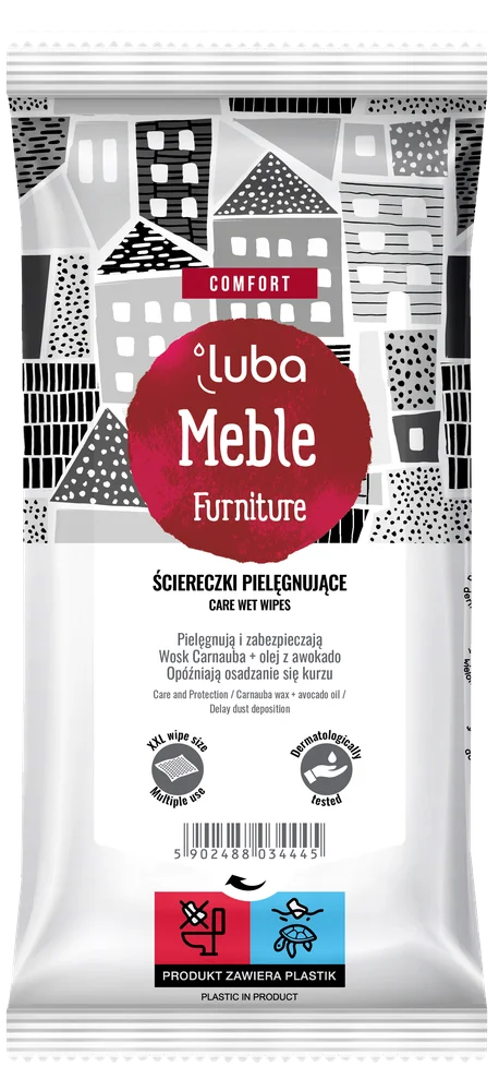 Luba Comfort, Nawilżane Ściereczki do mebli ułatwiają szybkie i wygodne czyszczenie mebli drewnianych w całym domu i ogrodzie. Doskonale sprawdzają się przy meblach ogrodowych, kuchennych i salonowych, usuwając kurz, zabrudzenia i ślady użytkowania, a jednocześnie pielęgnując drewno i podkreślając jego naturalny blask. Dzięki regularnemu stosowaniu meble zachowują piękny wygląd i są dłużej chronione.