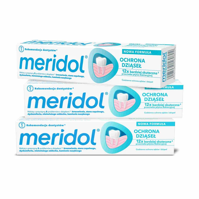 Regularne stosowanie pasty Meridol pozwala na: - Ochronę i redukcję bakterii na linii dziąseł. Delikatność balsamu i skuteczna walka z płytką nazębną. Ochronę przed próchnicą. Utrzymuje naturalną równowagę flory w jamie ustnej.Stosowanie produktu
