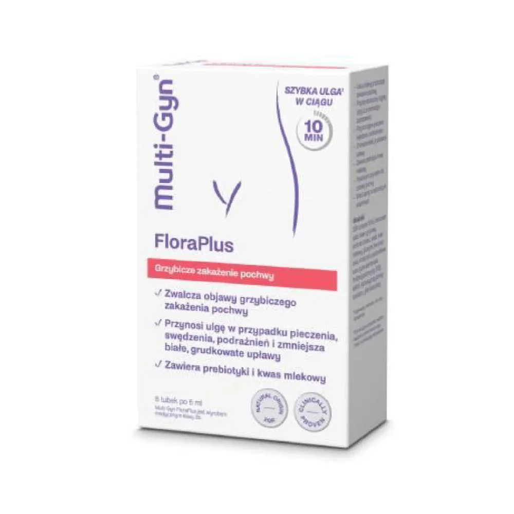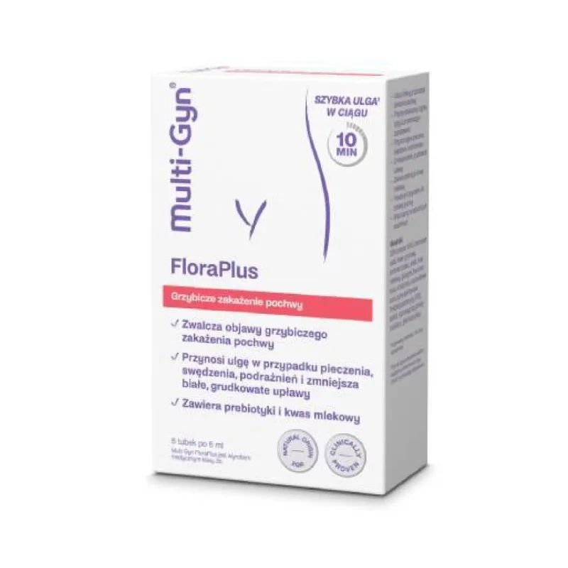 Multi-Gyn FloraPlus to wyrób medyczny wskazany do stosowania przy dolegliwościach związanych z grzybiczym zakażeniem pochwy: świąd, podrażnienia, gęste, białe upławy.Charakterystyka produktu
