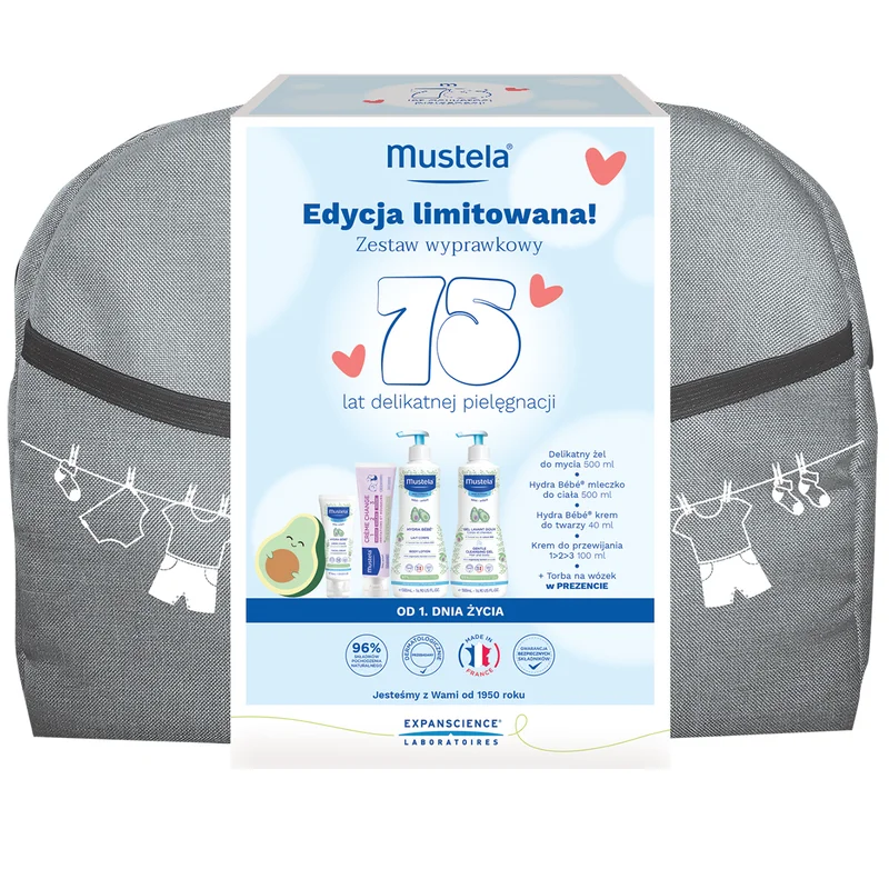Mustela Zestaw Wyprawkowy Edycja Limitowana 2025 to produkt kosmetyczny, który zawiera wybrane preparaty do pielęgnacji niemowląt. Skład zestawu obejmuje produkty o właściwościach nawilżających i ochronnych, stworzone z myślą o delikatnej skórze noworodków. Mustela to marka, która specjalizuje się w kosmetykach dla dzieci, zapewniając formuły o wysokim bezpieczeństwie i tolerancji. Zestaw jest idealnym rozwiązaniem dla rodziców poszukujących kompleksowej pielęgnacji w pierwszych miesiącach życia dziecka.Producent: LABORATOIRES EXPANSCIENCE POLSKA Sp. z o.o. , Warszawska 62, Wielogóra, 26-660 Jedlińsk