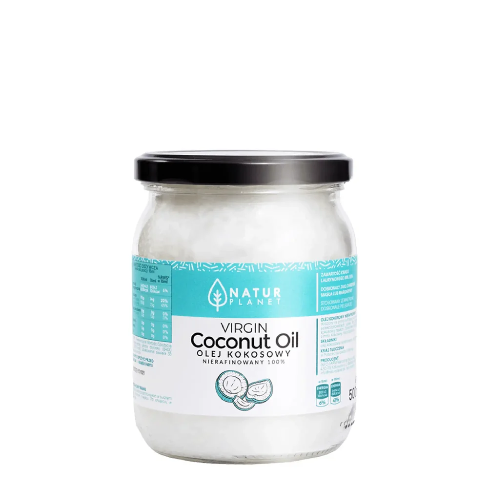 Natur Planet, Olej Kokosowy nierafinowany to dietetyczny środek spożywczy o wszechstronnym zastosowaniu w kosmetyce i kuchni. Intensywnie nawilża, odżywia i regeneruje skórę oraz włosy, a przy tym wspiera zdrowe funkcjonowanie organizmu, działając antybakteryjnie i przeciwzapalnie. Posiada charakterystyczny, intensywny aromat kokosa i bogaty skład bioaktywnych związków, dzięki czemu nadaje się do pielęgnacji ciała, twarzy, włosów, a także do smażenia, pieczenia i przygotowywania sałatek.