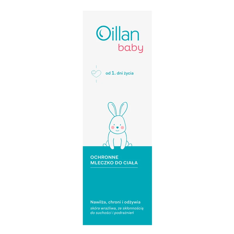 Oillan Baby Ochronne Mleczko do ciała odpowiednie jest codziennej pielęgnacji skóry wrażliwej, ze skłonnością do suchości i podrażnień. Do stosowania w zaostrzeniu zmian skórnych. Może być stosowany u niemowląt już od 1. dnia życia.Właściwości produktu