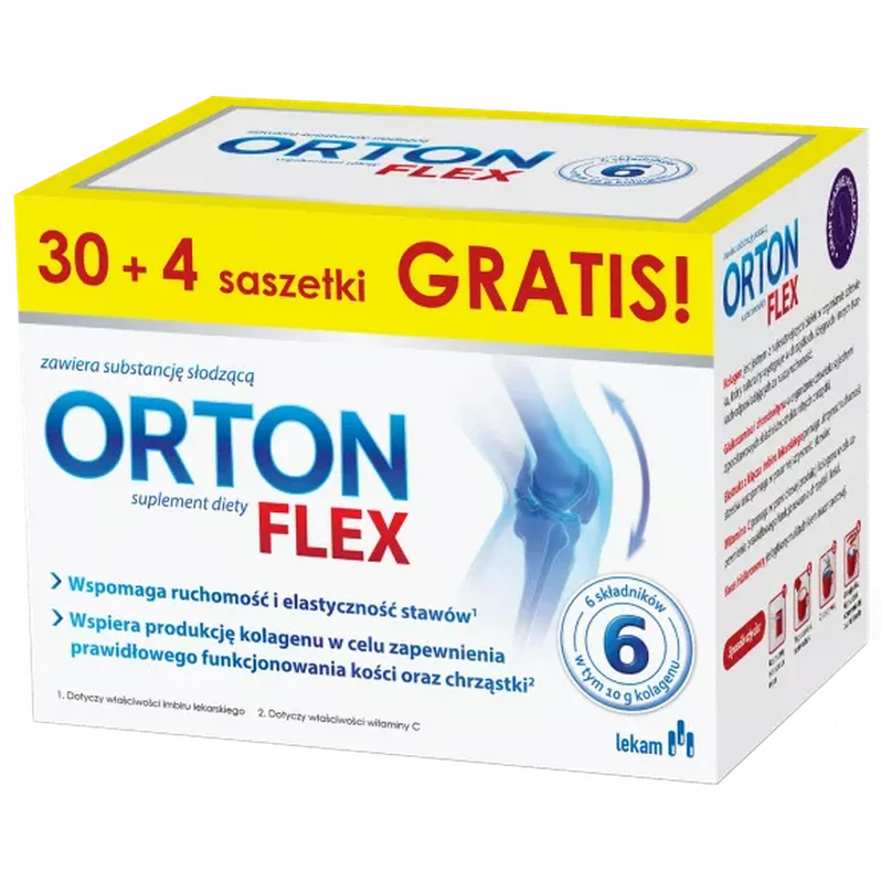 Orton Flex to suplement diety zawierający hydrolizowany kolagen, kwas hialuronowy, glukozaminę,
