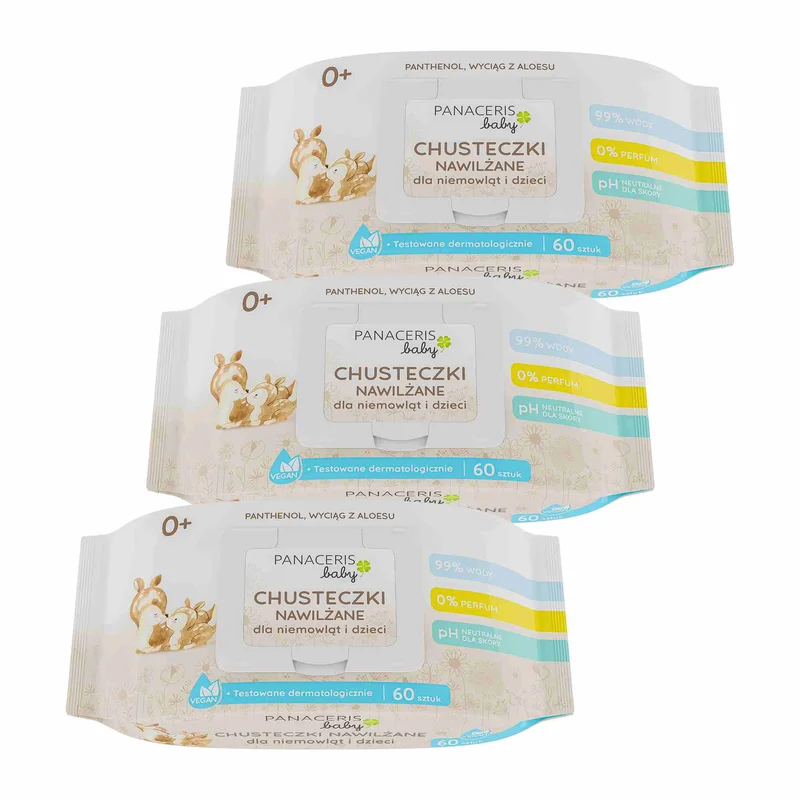 Panaceris Baby chusteczki nawilżane 99% wody dla niemowląt i dzieci, 60 sztuk