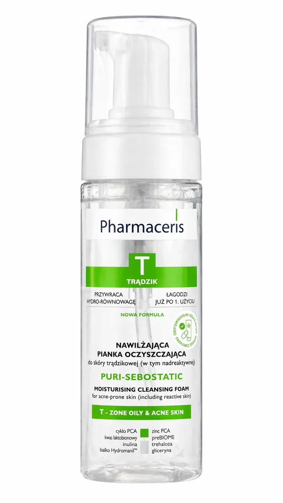 Nawilżająca pianka oczyszczająca do skóry trądzikowej i nadreaktywnej, Pharmaceris T Puri-Sebostatic: