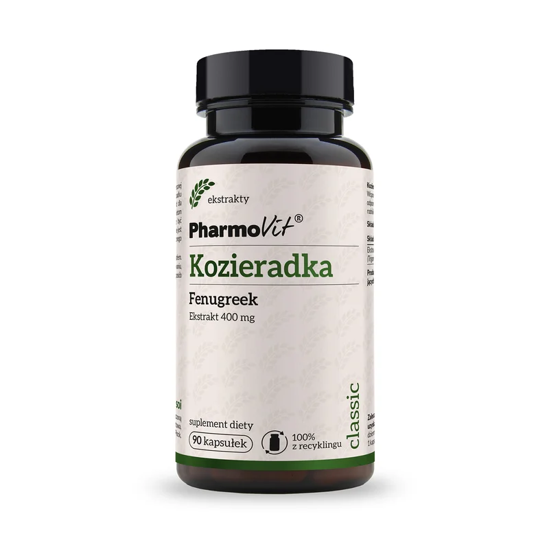 Pharmovit Kozieradka 400 mg to suplement diety zawierający składniki, które wspierają funkcjonowanie organizmu. Skład oparty jest na kozieradce, która może korzystnie wpływać na różne procesy metaboliczne. Produkt dostępny jest w formie kapsułek, co ułatwia jego dawkowanie. Przy wyborze suplementu warto zwrócić uwagę na ilość oraz składniki zawarte w preparacie.Składniki
