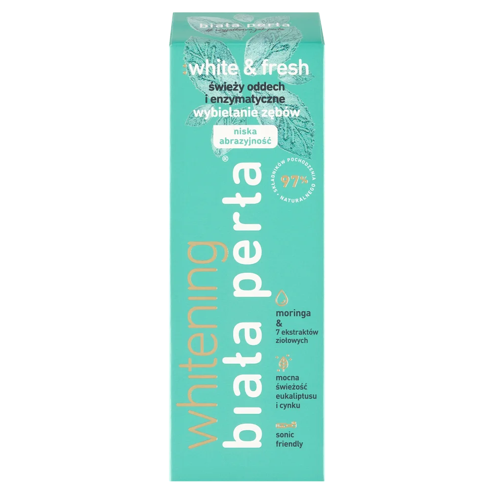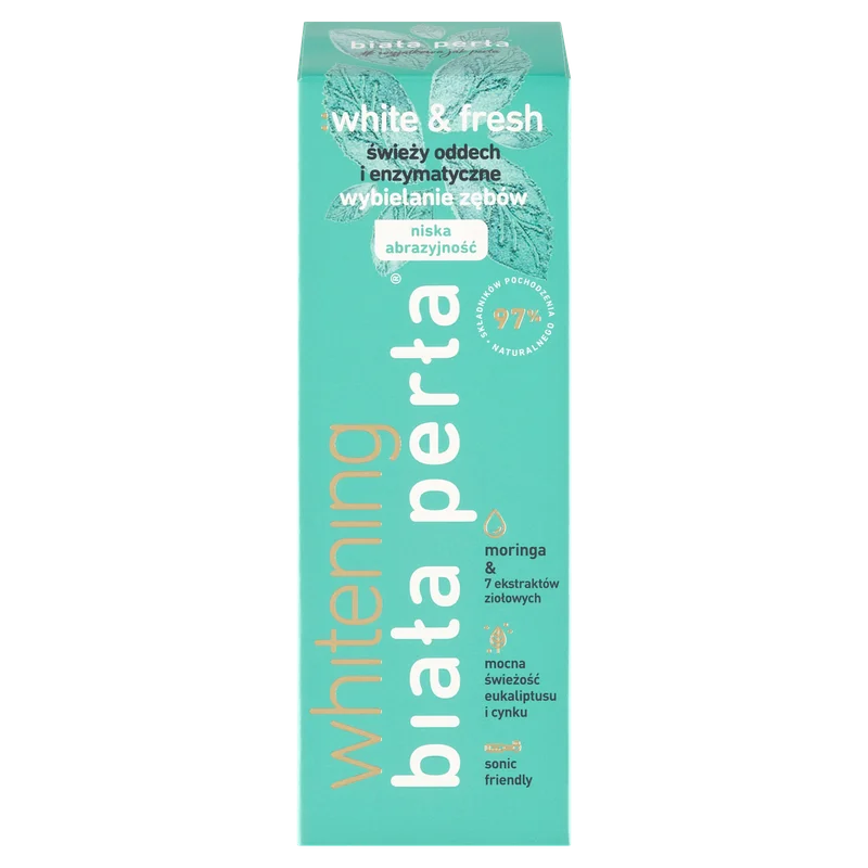 Biała Perła white & fresh moringa pasta do zębów – to produkt kosmetyczny przeznaczony do codziennej higieny jamy ustnej i zębów. Kosmetyk w swoim składzie zawiera 97% składników pochodzenia naturalnego.