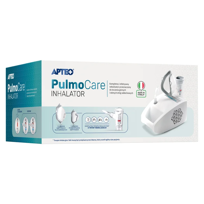 Pulmocare Apteo, Inhalator - wyrób medyczny do podawania leków drogą wziewną: terapia inhalacyjna. Odpowiedni dla dorosłych i dzieci.