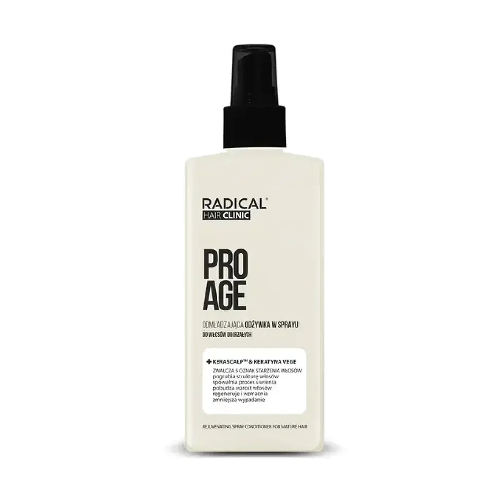 Radical Pro Age,Odmładzająca odżywka do włosów dojrzałych to produkt kosmetyczny stworzony specjalnie z myślą o włosach dojrzałych, który zapewnia im intensywne nawilżenie i kompleksową pielęgnację. Produkt dla osób dorosłych.