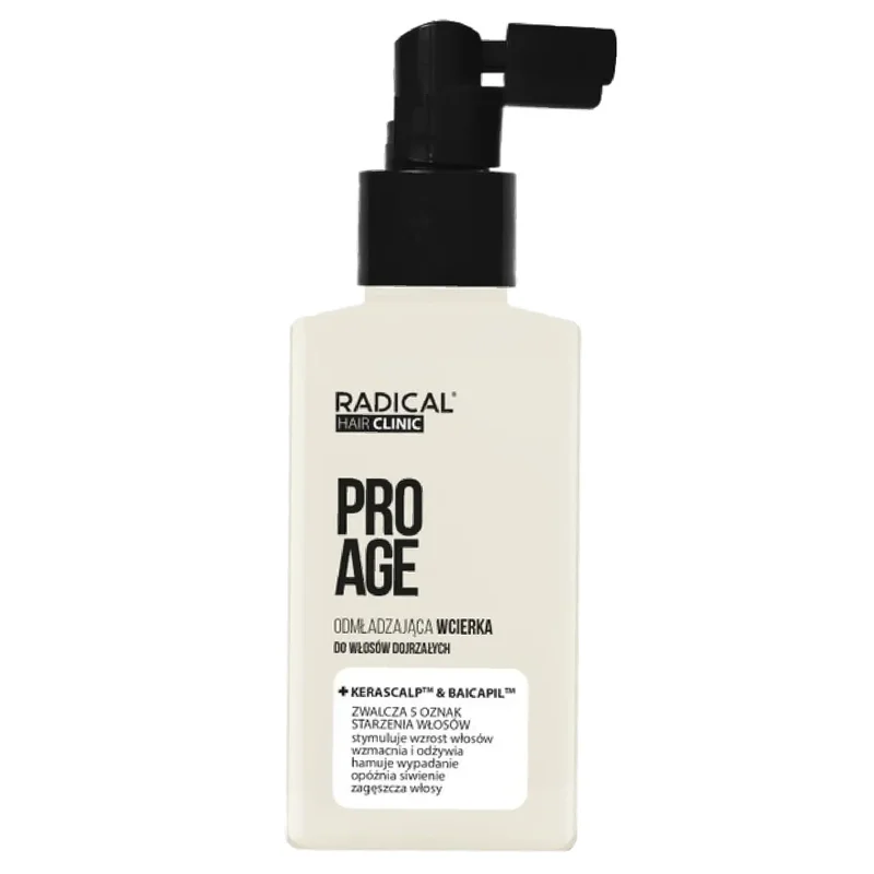 Radical Pro Age, Odmładzająca wcierka do włosów dojrzałych to produkt kosmetyczny, który wspiera procesy regeneracyjne włosów oraz ich naturalną odnowę. Produkt dla osób dorosłych.