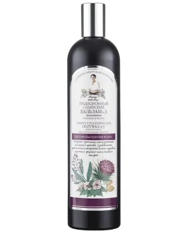 Syberyjski balsam Babuszka Agafia Nr 3 to produkt kosmetyczny, który odżywia i regeneruje włosy osłabione i zniszczone. Dzięki łopianowemu propolisowi, ekstraktowi z prawoślazu i pokrzywy włosy stają się silniejsze, bardziej elastyczne i łatwiejsze do rozczesania. Produkt wzmacnia cebulki, dodaje objętości i naturalnego blasku, jednocześnie chroniąc przed uszkodzeniami. Balsam jest wolny od silikonów, parabenów i szkodliwych konserwantów.