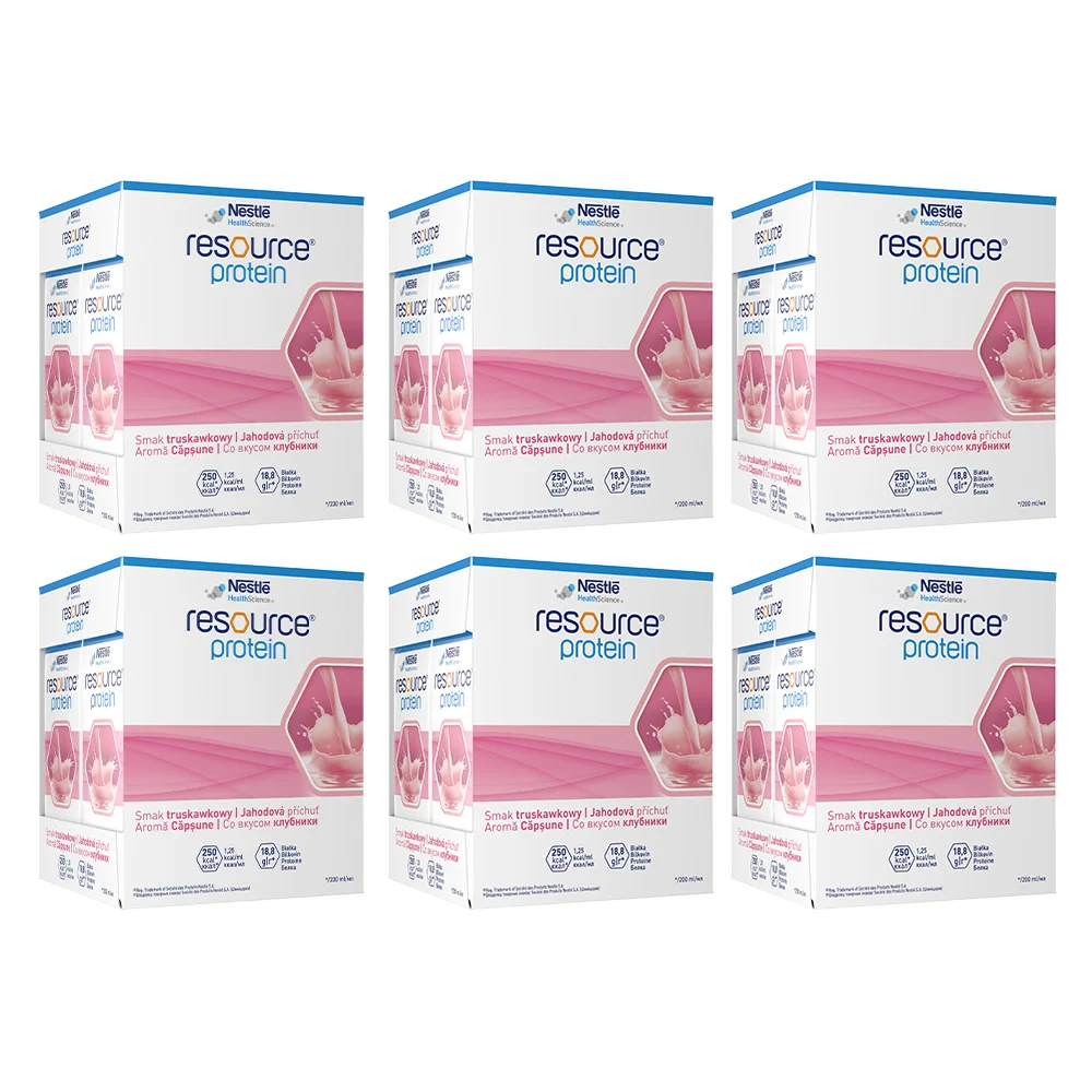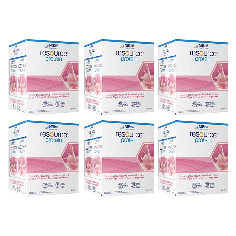 Resource Protein - żywność specjalnego przeznaczenia medycznego stosowana w postępowaniu dietetycznym u osób z niedożywieniem lub zagrożonych jego wystąpieniem, zwłaszcza w sytuacjach zwiększonego zapotrzebowania na białko, m.in. w ciężkich chorobach, u osób starszych, w okresie okołooperacyjnym oraz podczas rekonwalescencji. Preparat dostarcza wysokiej jakości białka oraz energii, wspierając uzupełnienie diety i urozmaicając codzienne posiłki dzięki różnorodnym wariantom smakowym.