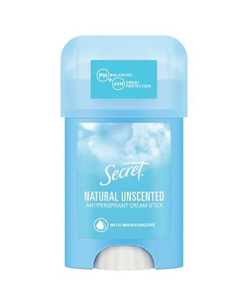 Kremowy antyperspirant Secret Natural Unscented to kosmetyk dezodorujący przeznaczony do codziennego stosowania na każdy rodzaj skóry, także wrażliwej.Właściwości produktu